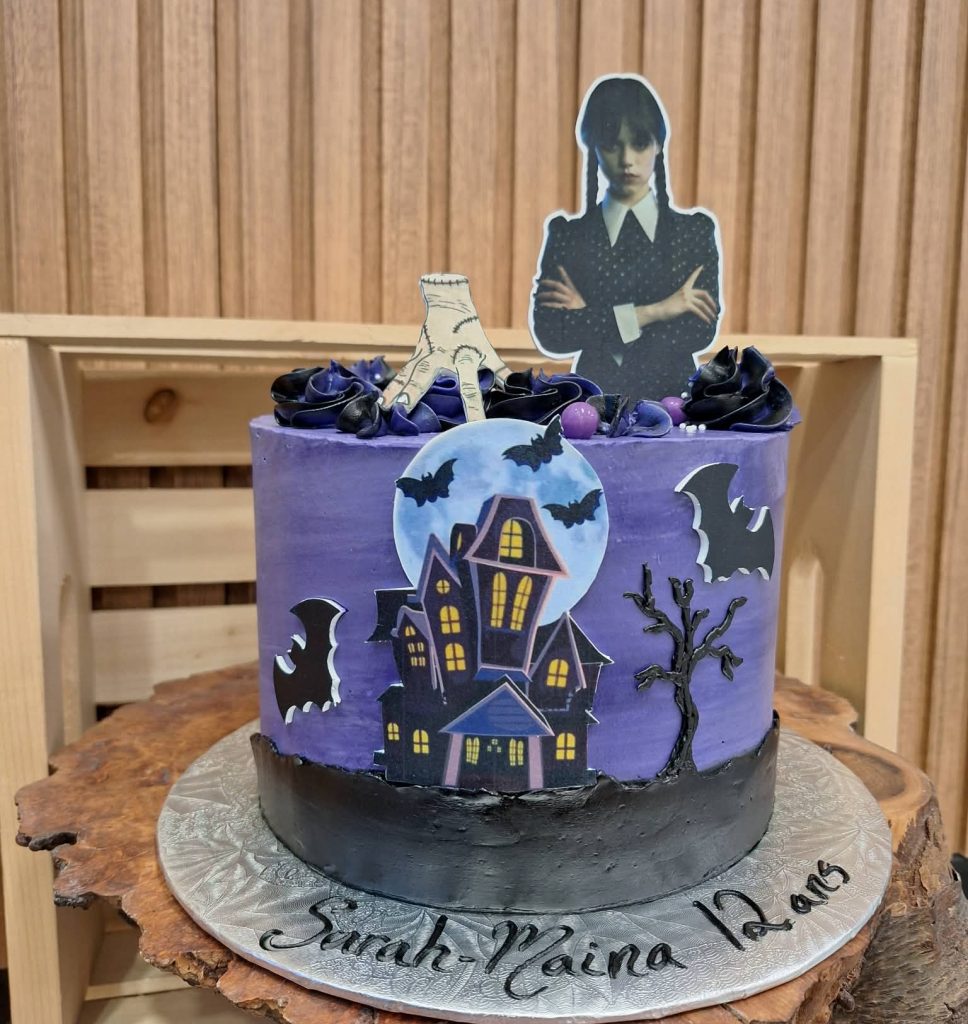 Gâteau Mercredi Pour un gâteau de plus de 30 portions, contactez-nous par téléphone ou courriel. Voici le modèle de gâteau que vous obtenez, le résultat peut différer légèrement. Vous pouvez choisir une autre couleur dominante plutôt que celle sur notre photo et on s’occupera d’en ajouter des complémentaires au besoin. Nos couleurs peuvent différer de notre charte de couleur, celle-ci servent de guide seulement.