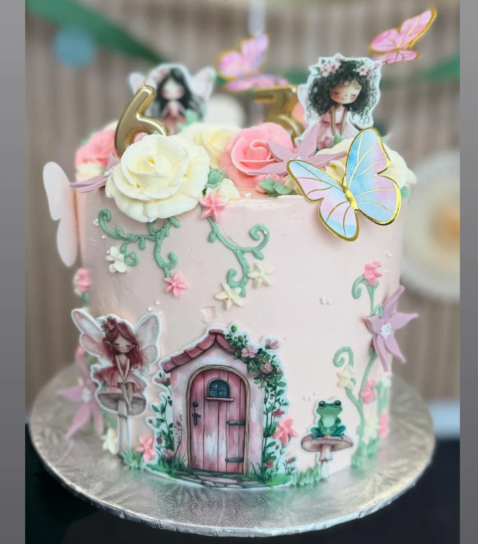 Gâteau petites Fées Pour un gâteau de plus de 30 portions, contactez-nous par téléphone ou courriel. Voici le modèle de gâteau que vous obtenez, le résultat peut différer légèrement. Vous pouvez choisir une autre couleur dominante plutôt que celle sur notre photo et on s’occupera d’en ajouter des complémentaires au besoin. Nos couleurs peuvent différer de notre charte de couleur, celle-ci servent de guide seulement.